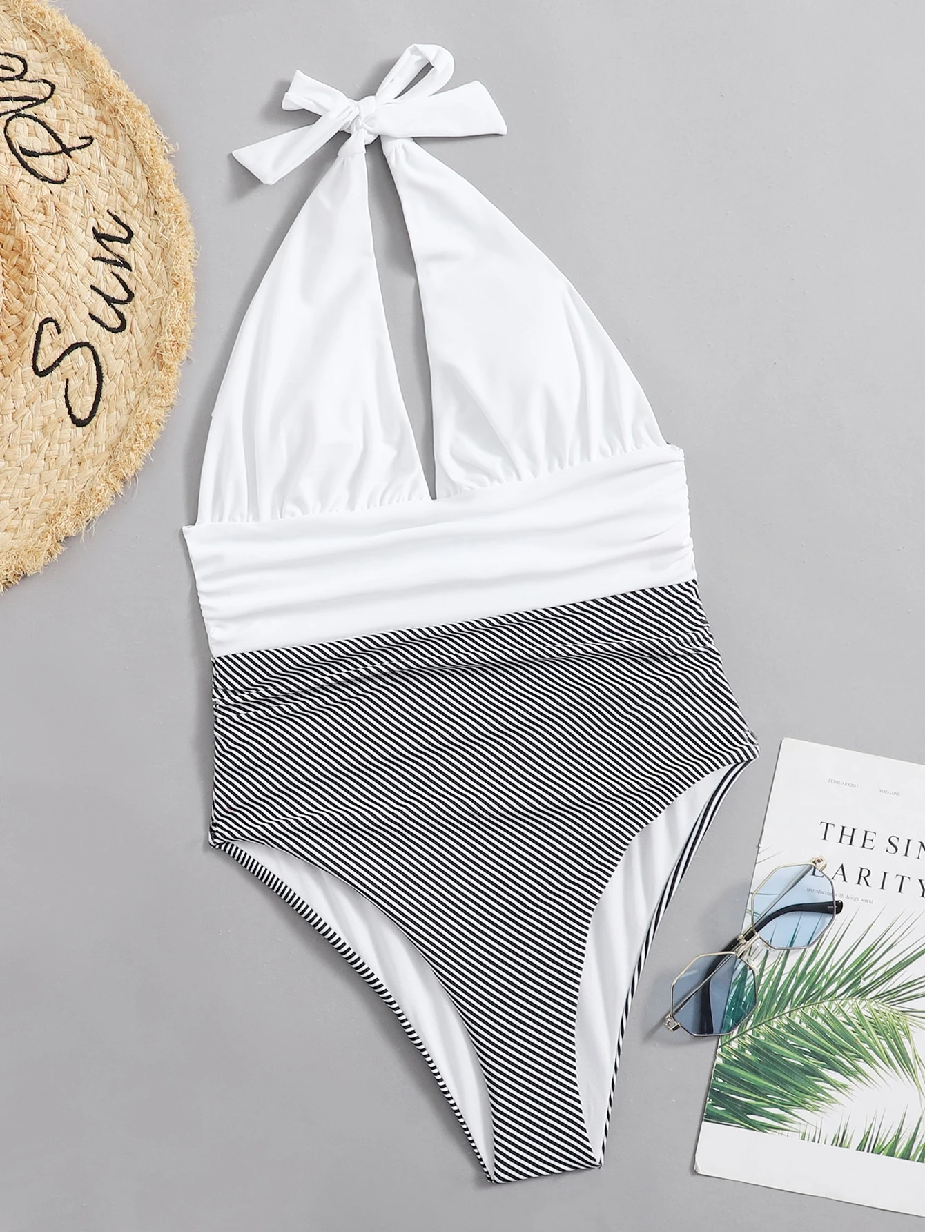 Contrast Striped Halter One Piece Swimsuit Romwe Usa